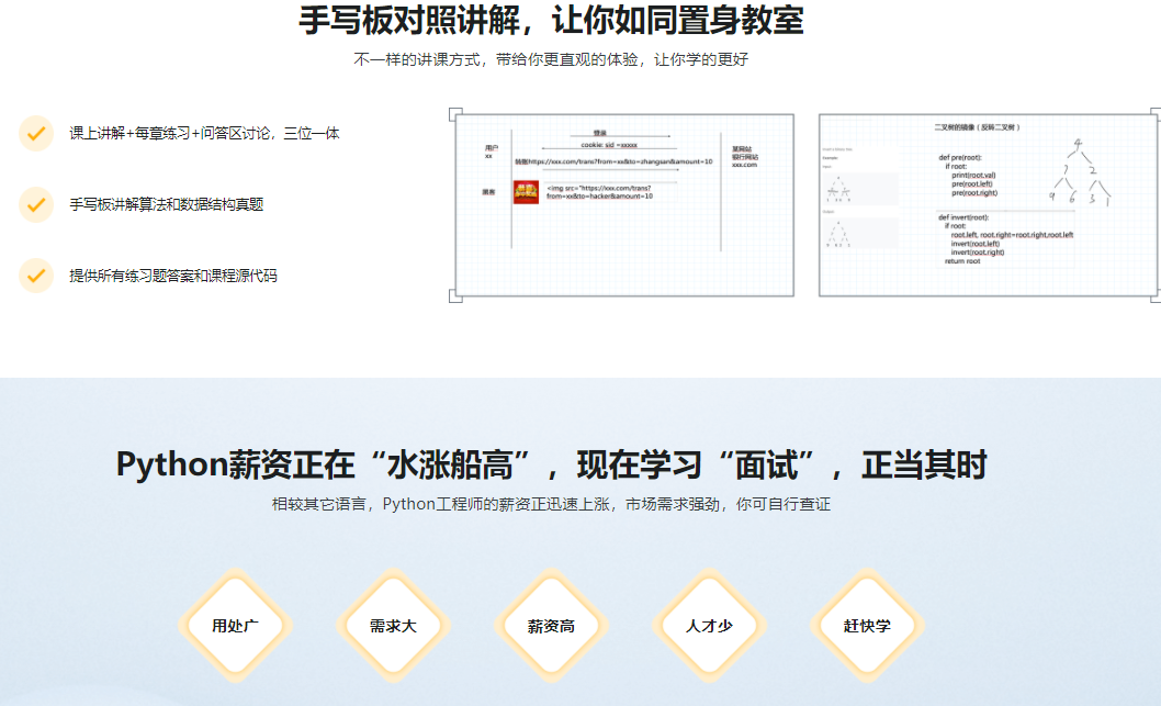 课程覆盖了90%面试高频考点 +10%课程中的面试技巧+简历指导 +面试经验分享,硬核技术+面试软实力双重提升,优质offer纷至沓来!目前已经帮助很多pythoner拿到offer!