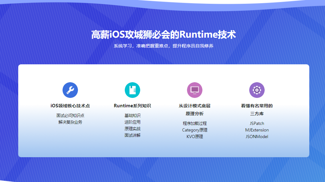 - 视频:1-1 全面解析iOS中的Runtime机制导学 (11:17)试看