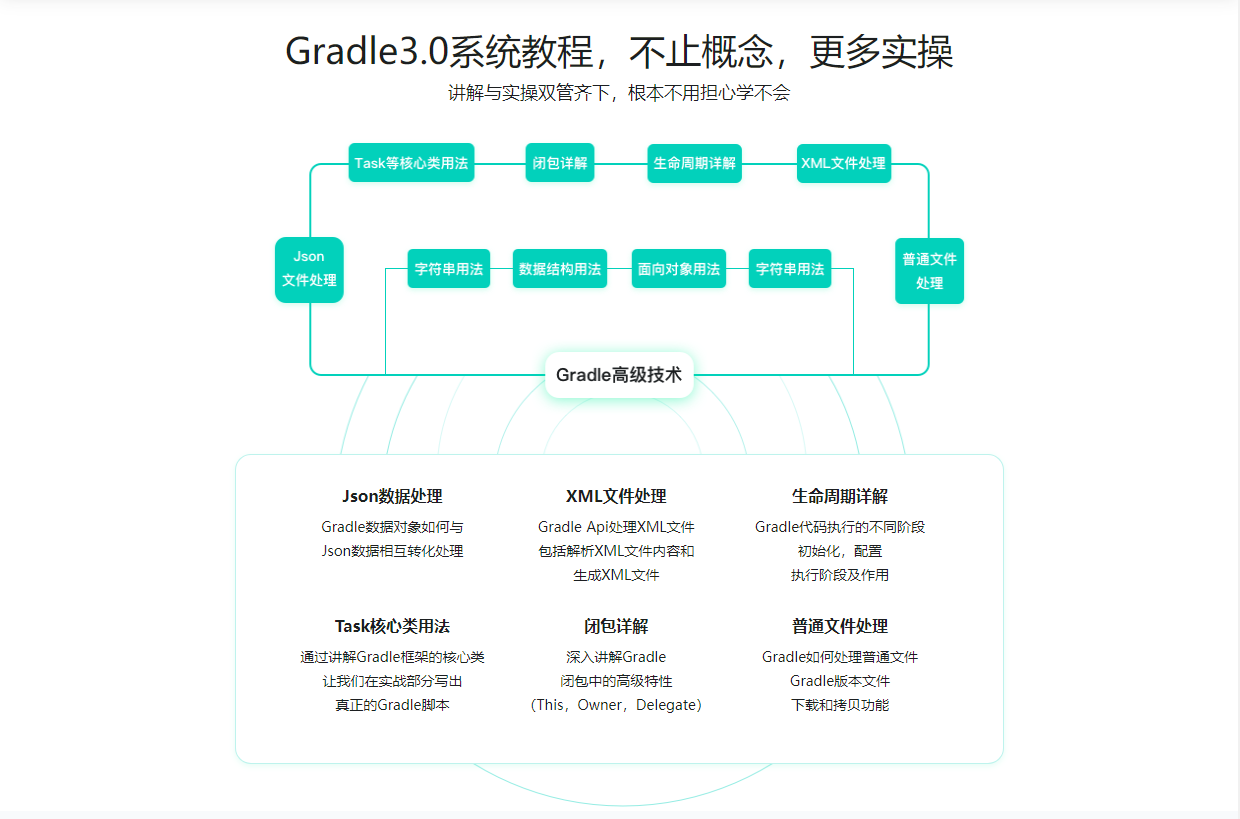 除了Project和Task,gradle还有一些其它相对重要的模块,本章我们先讲解Settings,SourceSet以及这些模块在实际项目中的实际使用。然后讲解gradle最后一个核心技术plugin,通过实战plugin自定义,让同学们能够将自己编写的脚本封装为插件供其它开发者使用。…