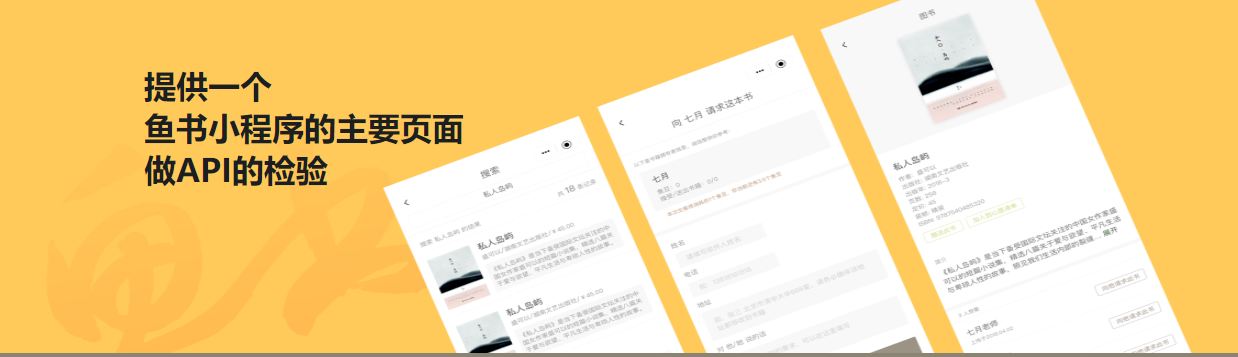 理论必须结合实践,我们提供一个简单的鱼书小程序,编写他的业务接口,并用小程序来进行API的检验