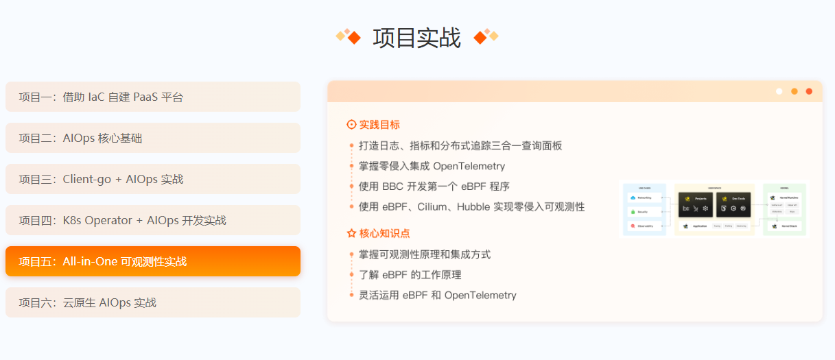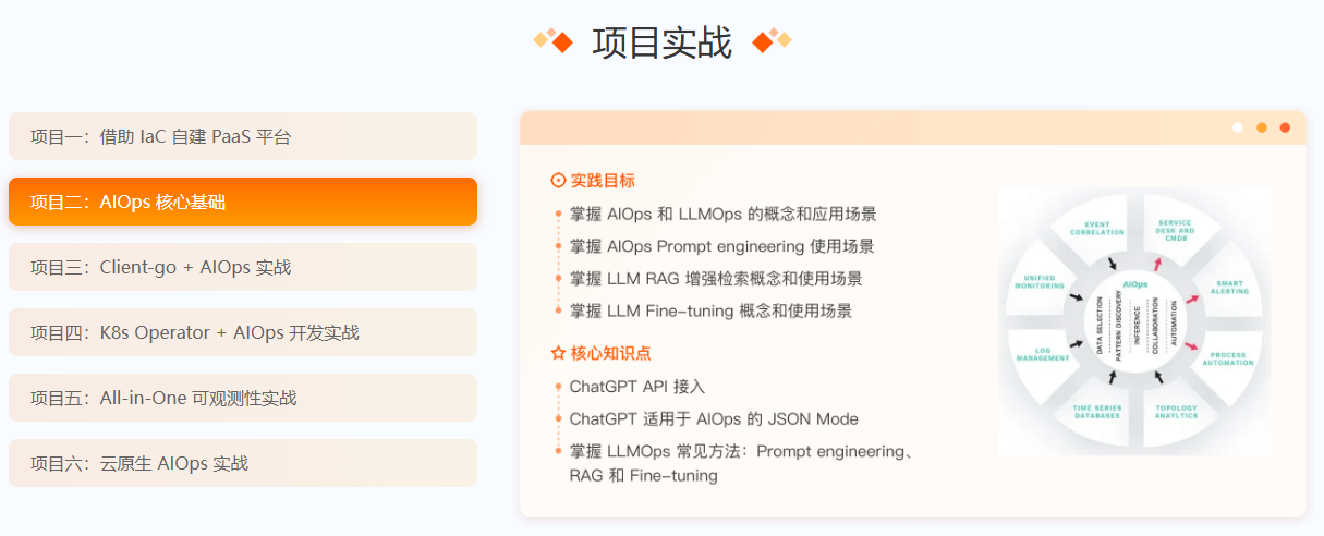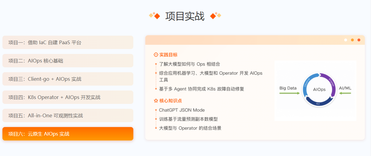 极客时间AIOps 训练营,本课涵盖laC、Client -go、Operator 开发等多种技能,打造自己的云管理工具,全面覆盖AIOps核心技术,培养新时代复合型云原生、运维人才,紧跟机器学习和大模型最新趋势,掌握AIOps和LL .MOps的最佳实践。