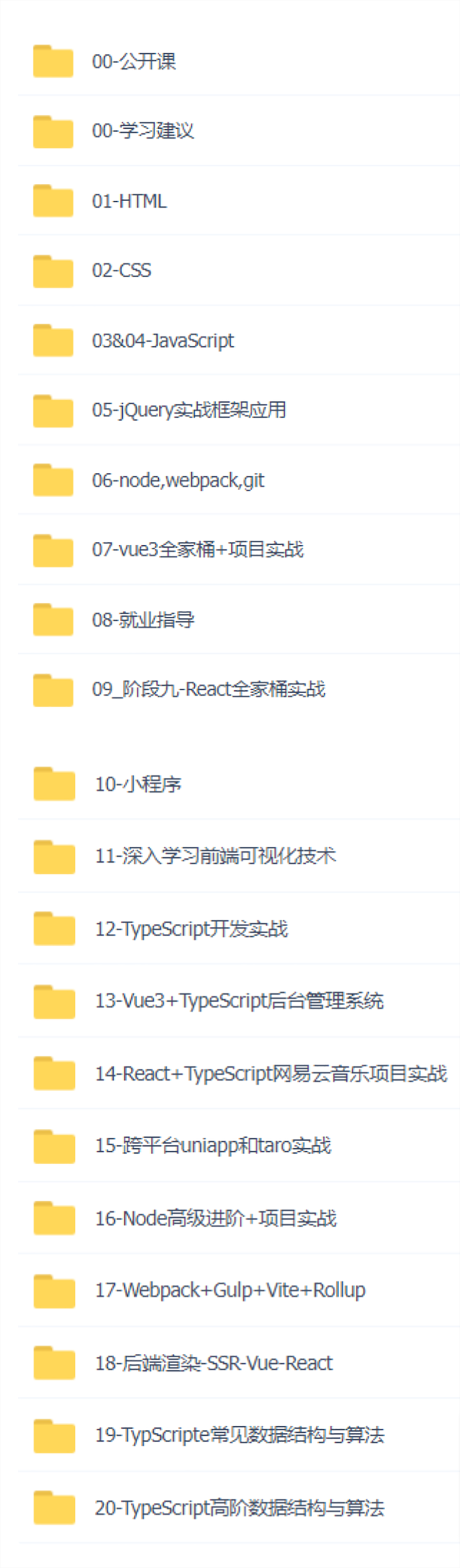 | ├──3、课程体系总览-学习建议_03_(理解)前端课程大纲和薪资标准.mp4 138.57M