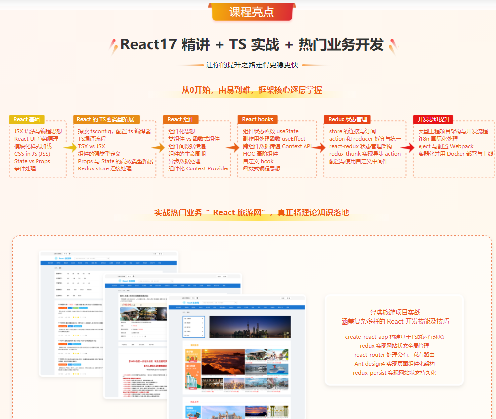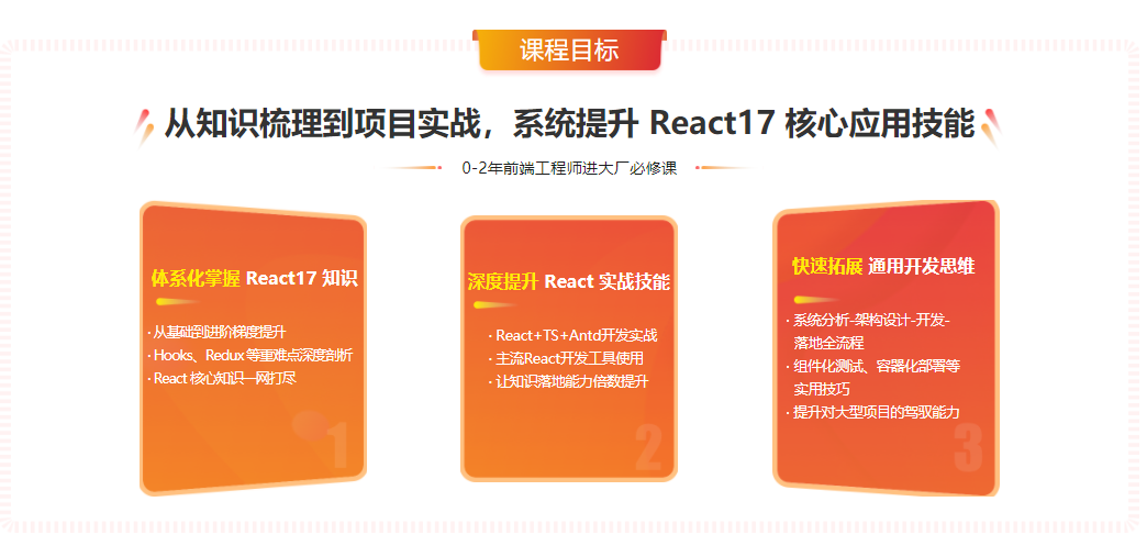 React — 大厂前端必备的技能点,本课程将带你系统学习 React 17 的完整技术体系,并结合 TypeScript 开发热门业务应用,实现对于框架的深度掌握,助你提升硬实力,快人一步进大厂。