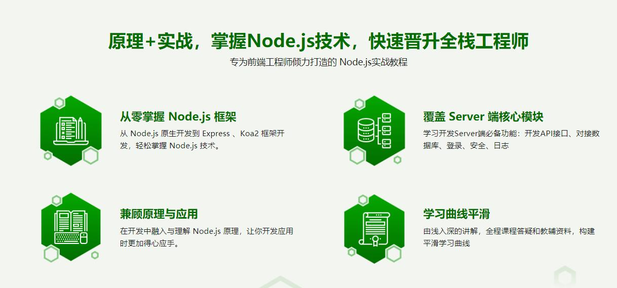 前端开发人员必备技能Node.js提升课程。本课程以博客项目为主线,由浅入深讲解 Node.js 基础知识、框架和插件原理、web Server 的特点与必备模块,在项目开发过程中全面掌握Node.js。掌握全栈工程师必备技能!