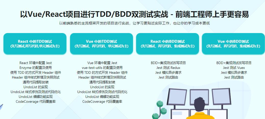 以 Vue / react 项目进行实战,更适合前端工程师学习的测试课程